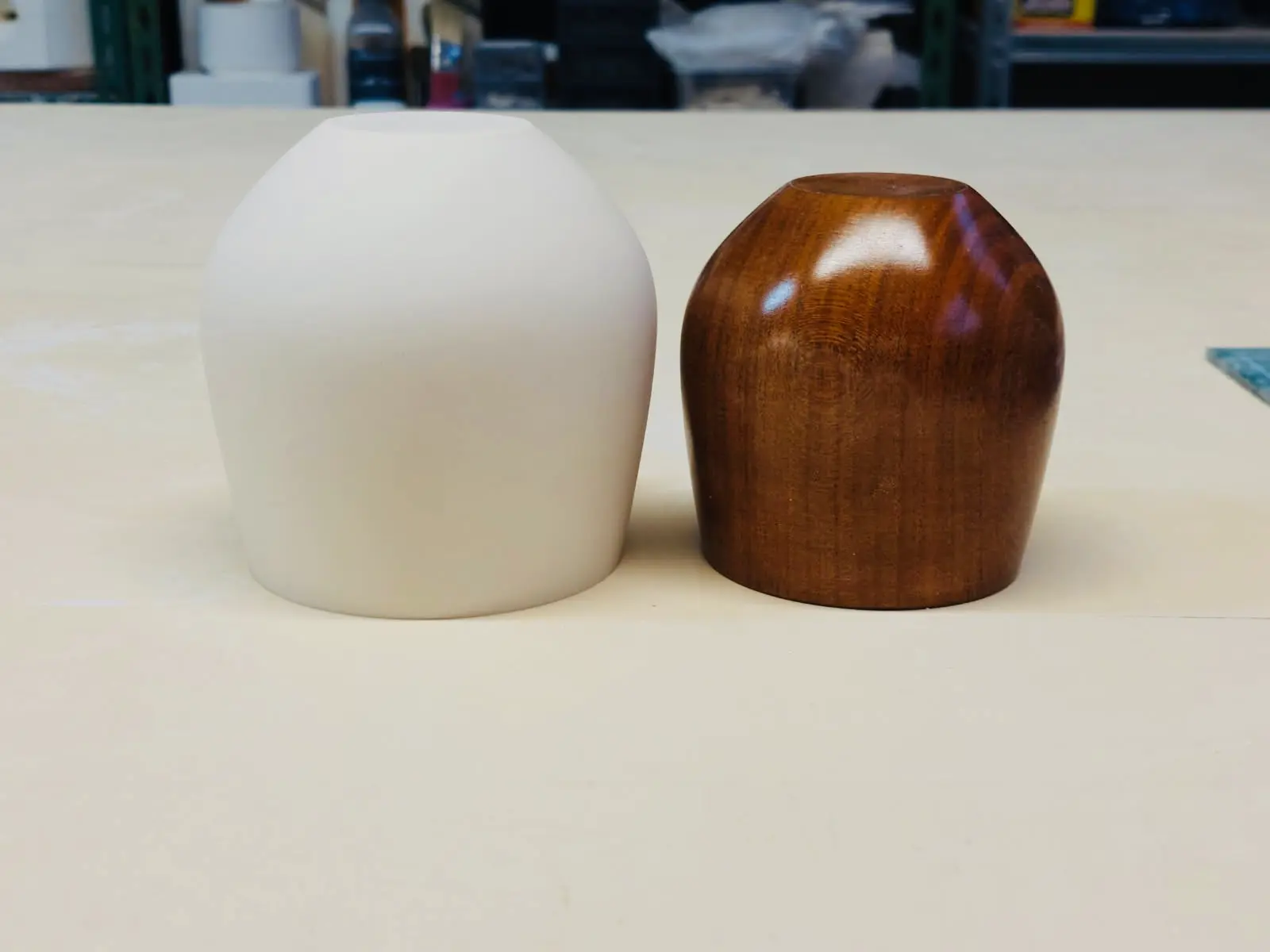 Le façonnage a permis de définir le galbe idéal, assurant confort et équilibre en main. Chaque prototype a été ajusté à la main avant validation du moule définitif.